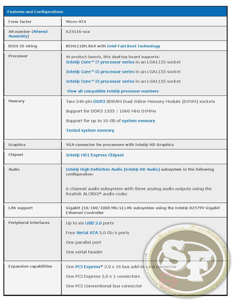 -Official link product :http://www.intel.com/content/www/us/en/motherboards/desktop-motherboards/desktop-board-dh61ww.html